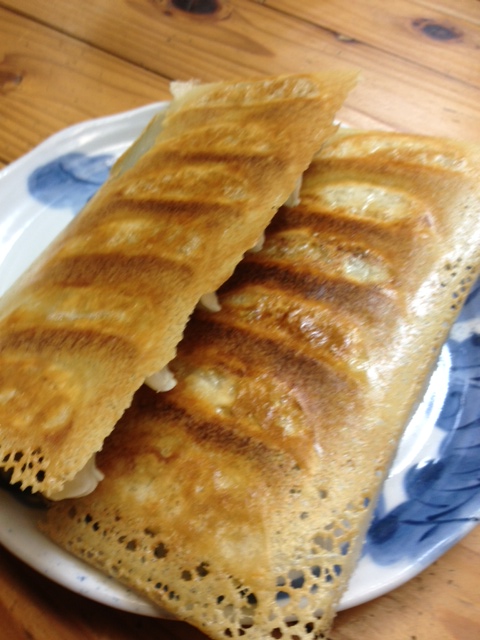 羽根餃子、焼いております。